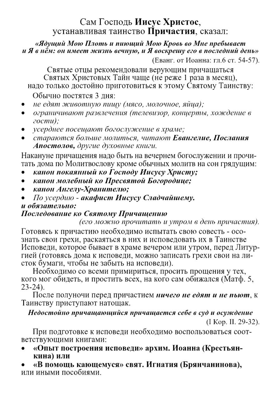 Сегодня 19.02.26г. для фонда напечатаны листовки «О подготовке к причастию с кратким перечнем грехов».